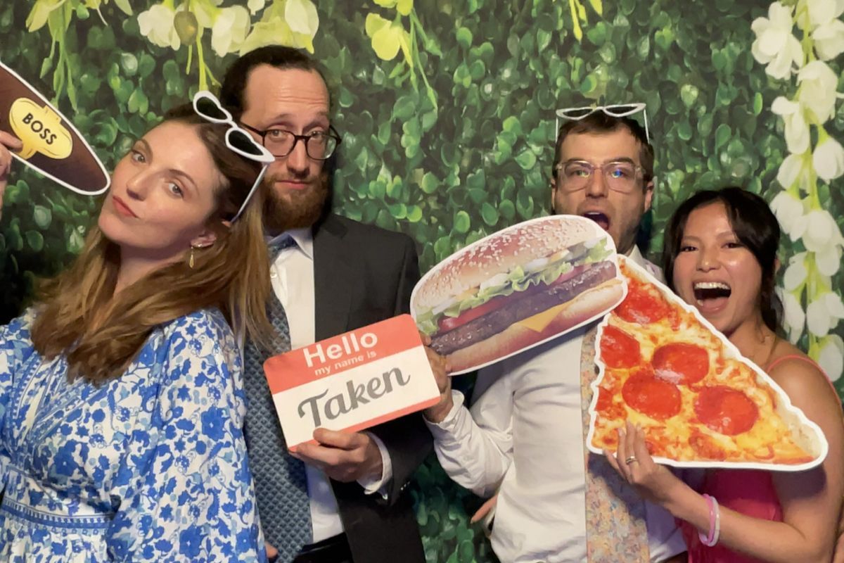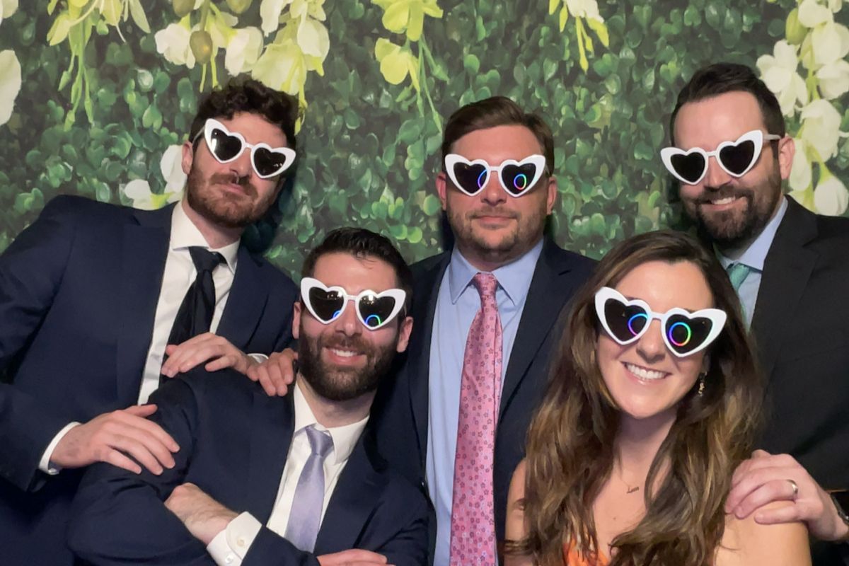 This particular wedding was a first for a few things that we had to offer, and we’re glad we got to showcase them at the wedding. The first is our beautiful hedge wall and flower backdrop that matched perfectly with the theme of the night as well as the ambience at Joseph Ambler Inn. This backdrop was one of our larger ones that allowed us to take pictures of larger groups in the photo booth.